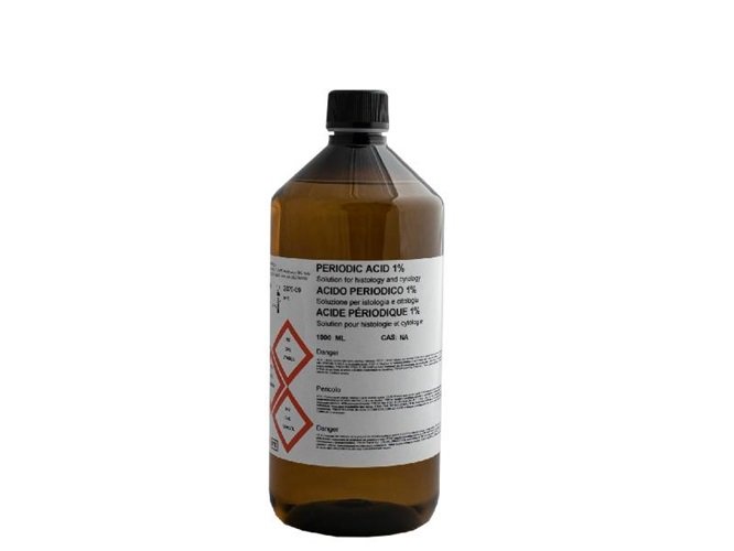 Водний розчин на основі періодичної кислоти 1%, що використовується як кислотне оброблення перед реактивом Шиффа в методі фарбування P.A.S. Періодична кислота використовується в комбінації з реактивом Шиффа для виявлення альдегідів. Фарбування P.A.S. (Шифф + періодична кислота) виявляє наявність глікогену та глікопротеїнів. Багато тканин, таких як сполучна тканина, хрящ, кісткова тканина, слизові залози та клітини, структури нирок, базофільні клітини гіпофіза та колоїдні речовини щитоподібної залози можуть бути P.A.S. позитивними.
