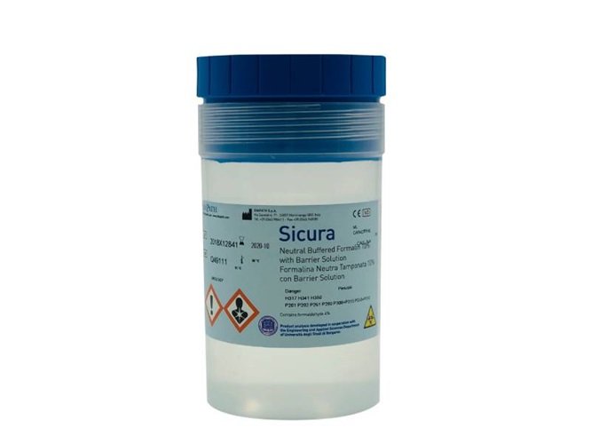 Sicura, контейнер, 250 мл., попередньо заповнений 10% нейтральним забуференим розчином формаліну і бар’єрним розчином 170 мл. , 36 шт.